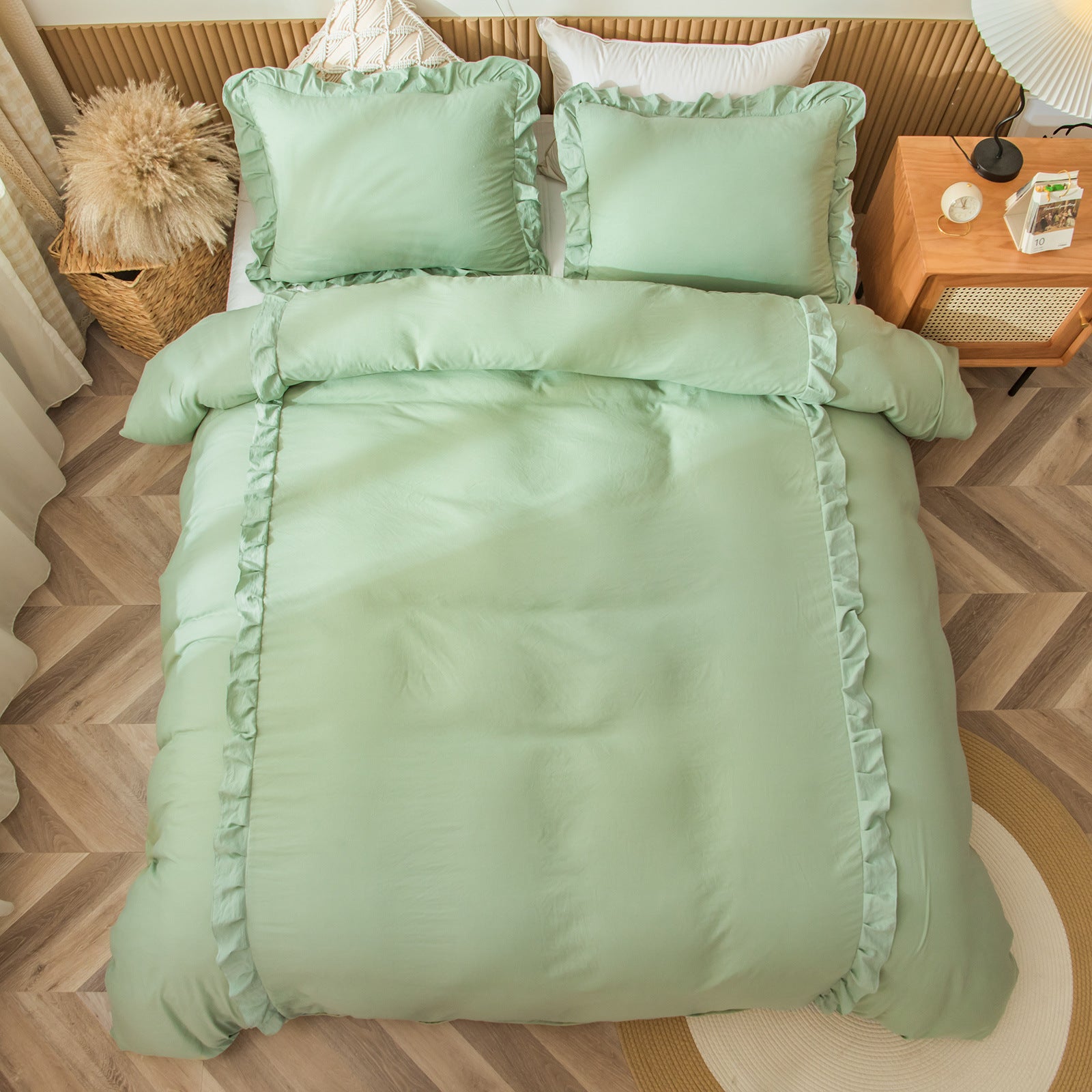 Home Textile Bedding Chemical Fiber Washed Cotton Surface Ruffled Quilt Cover Kit