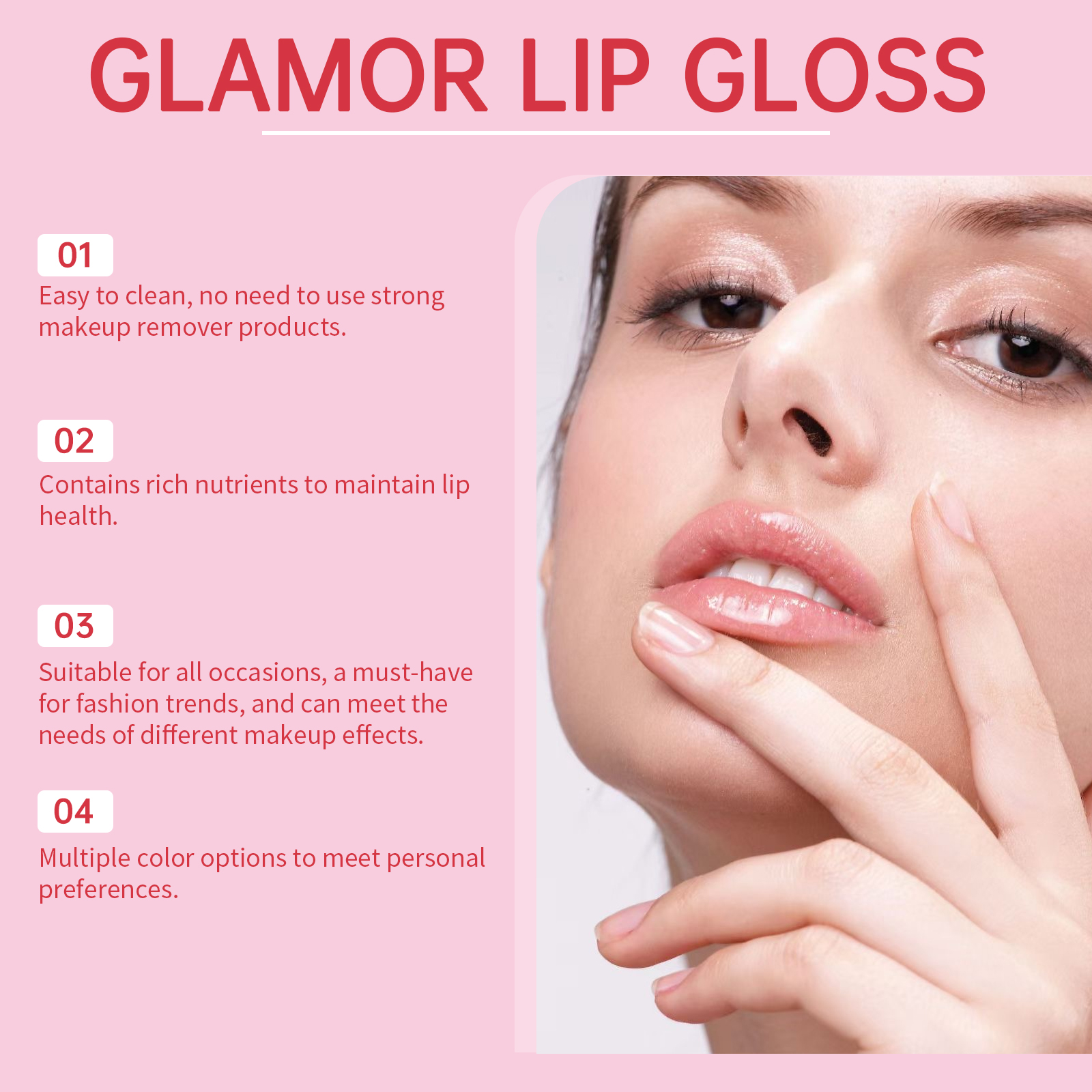 Our Pheromone Lip gloss contains titanium dioxide and tocopherol (vitamin E). It provides lasting color and keeps your lip gloss bright. Its use method is very simple: clean and dry lips, take the right amount of product evenly spread on the lips. And easy to apply, easy to achieve the perfect lip makeup effect.