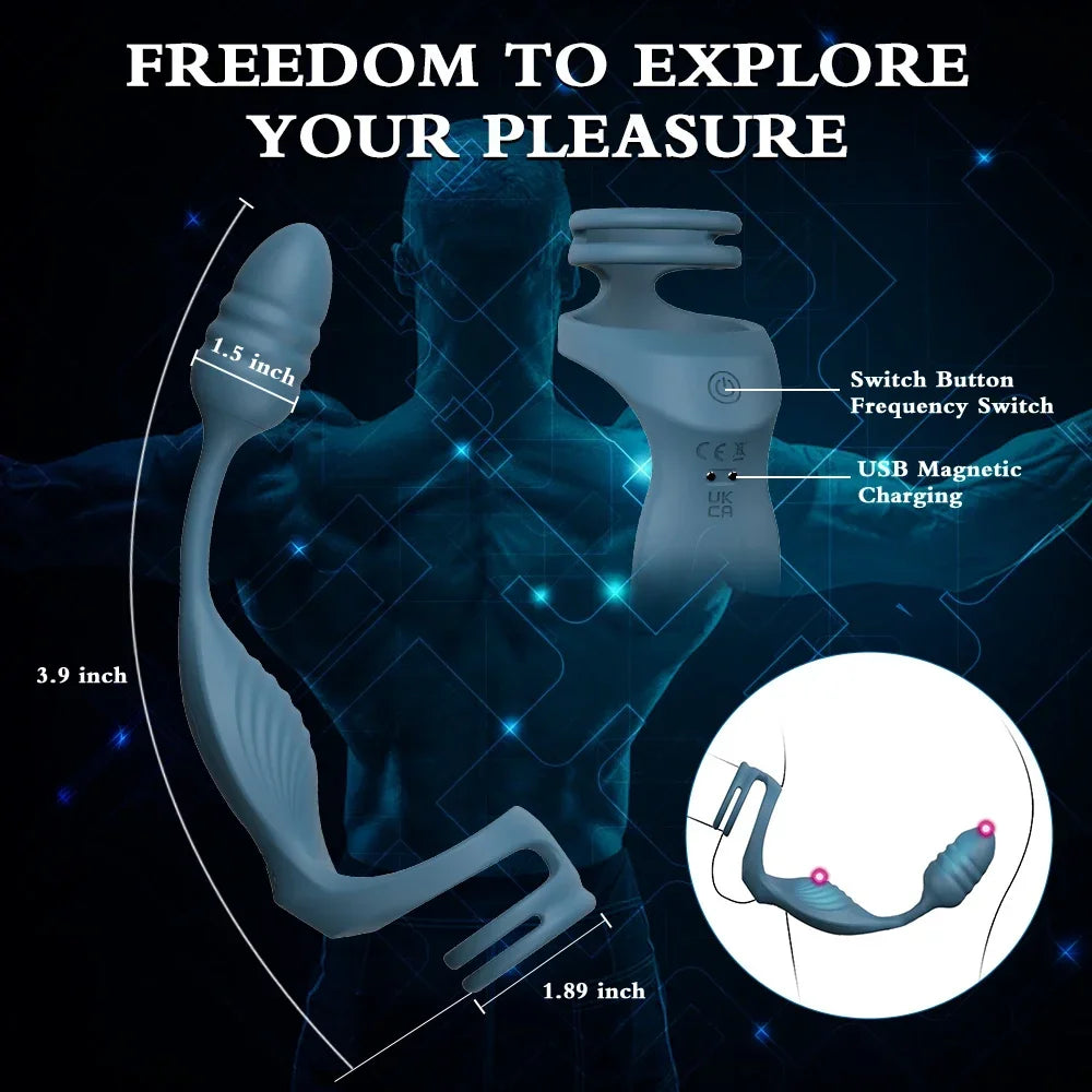 Prostata-Massagegerät mit Penisring, vibrierender Buttplug, Analvibrator, kabellose Fernbedienung, Sexspielzeug, Analdildo-Stimulator für Männer und Frauen