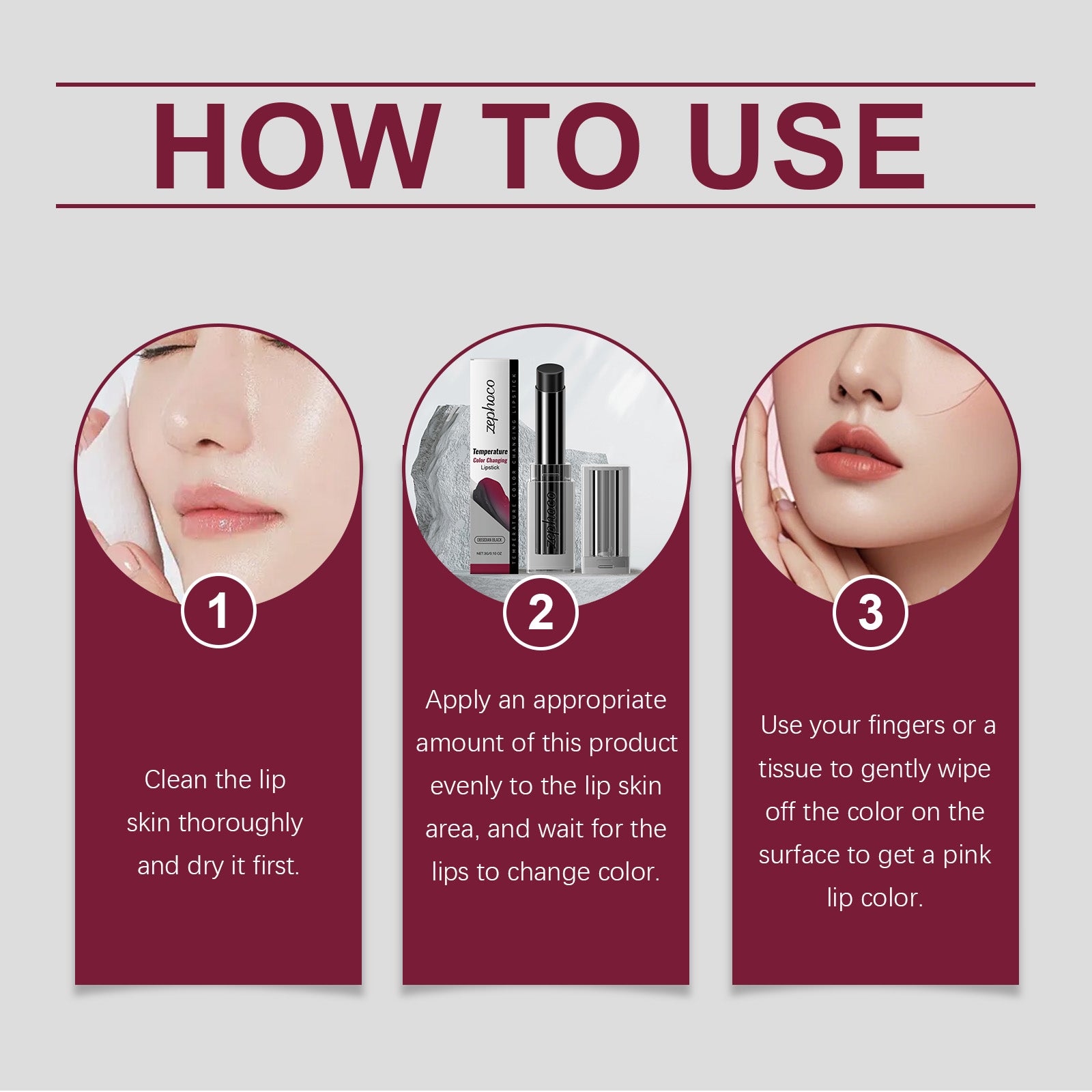 Our obsidian warm lipstick contains mineral grease and mineral oil. It can change hue depending on your body temperature. Moisturize your lips throughout the day. Rich in nutritious phenols and vegetable oils. Its use method is very simple: thoroughly clean the lip skin, dry it first, take an appropriate amount of this product evenly apply to the lip skin. It also moisturizes for a long time and keeps lips soft.